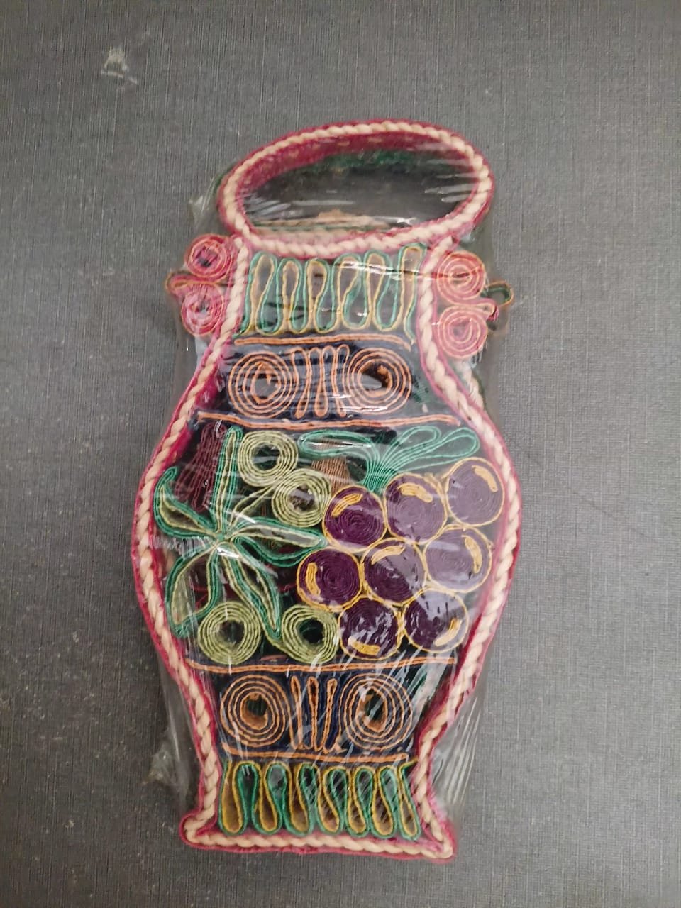Bring a touch of rustic, handmade charm to your home with our Artisan Quilled Woven Vase Wall Decor. This unique piece of wall art combines traditional wicker weaving with intricate paper quilling techniques to create a vibrant, three-dimensional display. Featuring a classic urn-shaped vase silhouette filled with lush grapes and greenery, it serves as a warm and inviting accent for kitchens, dining areas, or sunrooms.