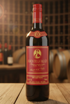 Indulge in the classic elegance of Baron de la Vallée, a sophisticated dry red wine crafted for those who appreciate the finer things in life. This medium-bodied red is celebrated for its balanced character, offering a smooth finish that honors centuries of winemaking tradition. Encased in a sleek, dark bottle with a vibrant crimson label and matching red foil capsule, it makes a bold statement on any dining table or wine rack.