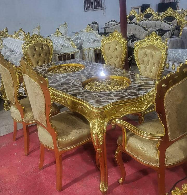 Dine in elegance with our Gold 6 Seater Dining Set — a perfect blend of luxury, comfort, and timeless design. Crafted to elevate every meal into a memorable experience.