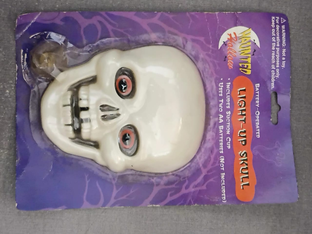 Add a bone-chilling glow to your home this Halloween with the Haunted Hollows Light-Up Skull. This battery-operated decoration features a classic, eerie skull design with glowing eyes that are sure to startle and delight trick-or-treaters. Designed for easy installation, it comes equipped with a built-in suction cup, making it the perfect spooky addition to windows, mirrors, or any smooth surface.