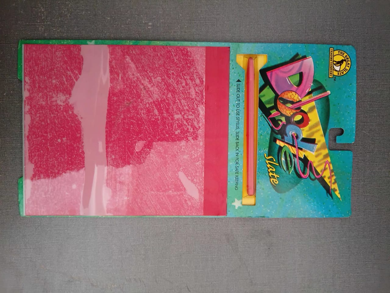 Vibrant Retro Aesthetic: Decorated with bold, neon-style graphics and the iconic Great Slate Trading Companyâ„¢ logo, making it a visually striking toy.